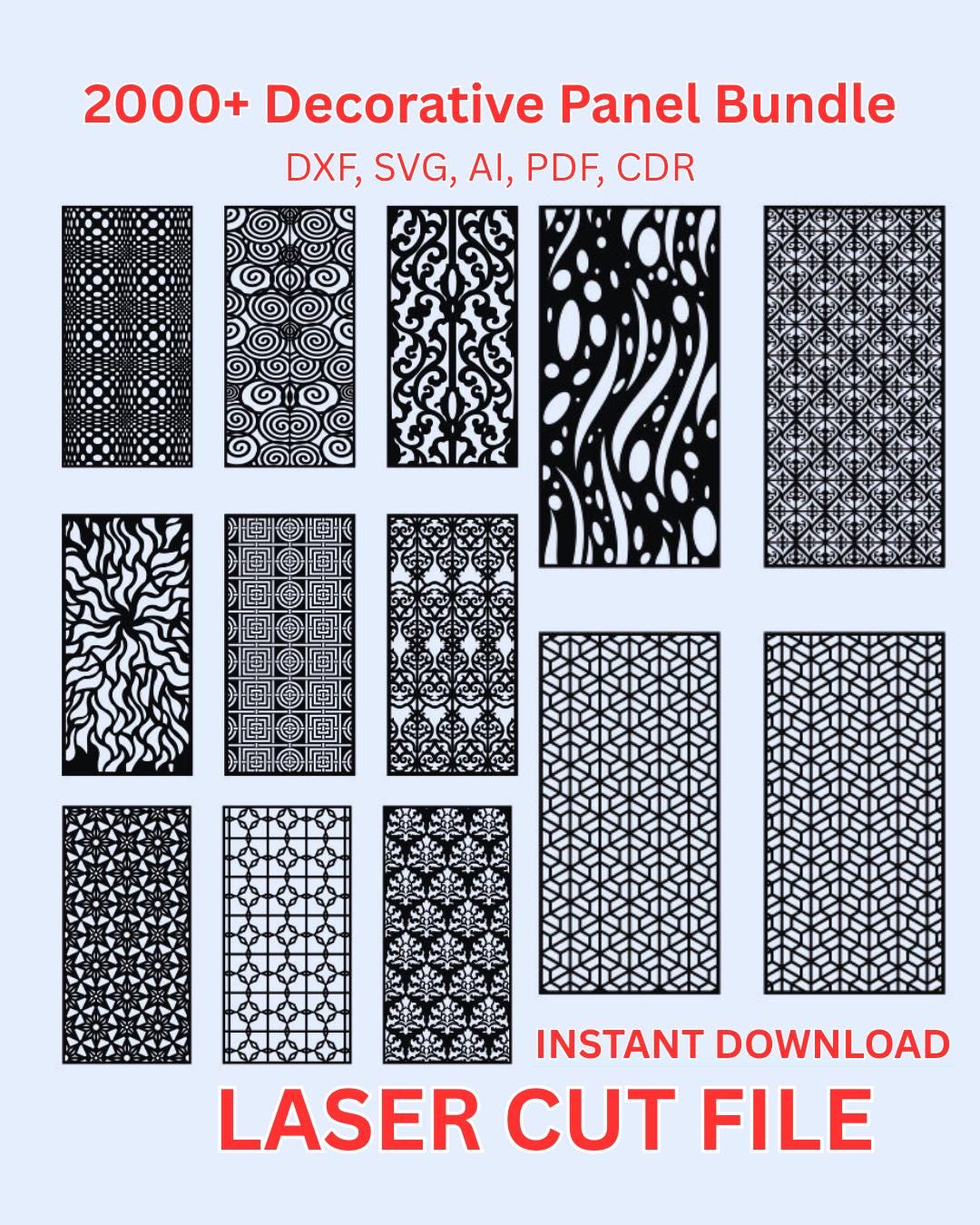 A complete collection of 2000+ Decorative dxf files for plasma cutting Grill Board & Panel Laser Cut Designs for interior and exterior decoration.
