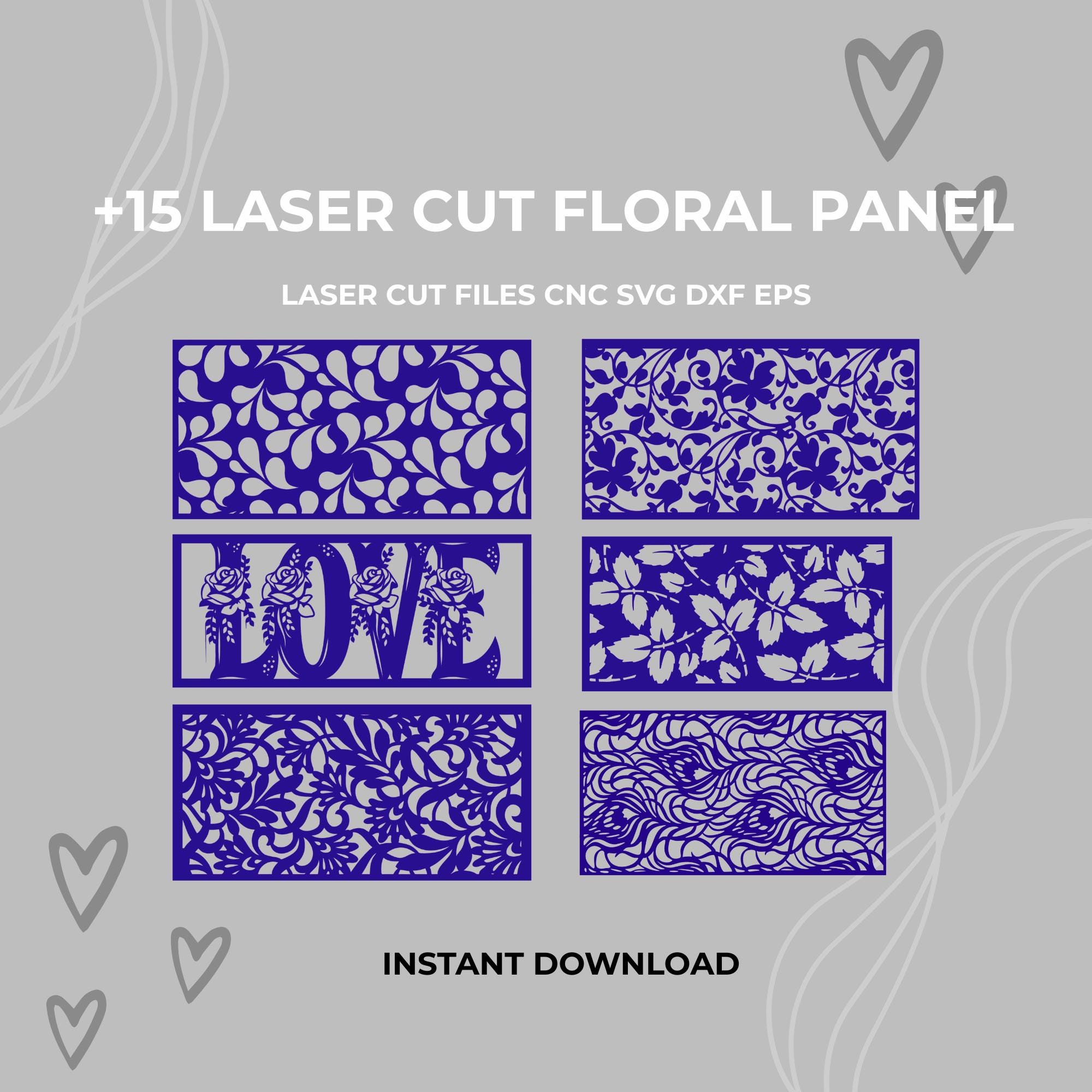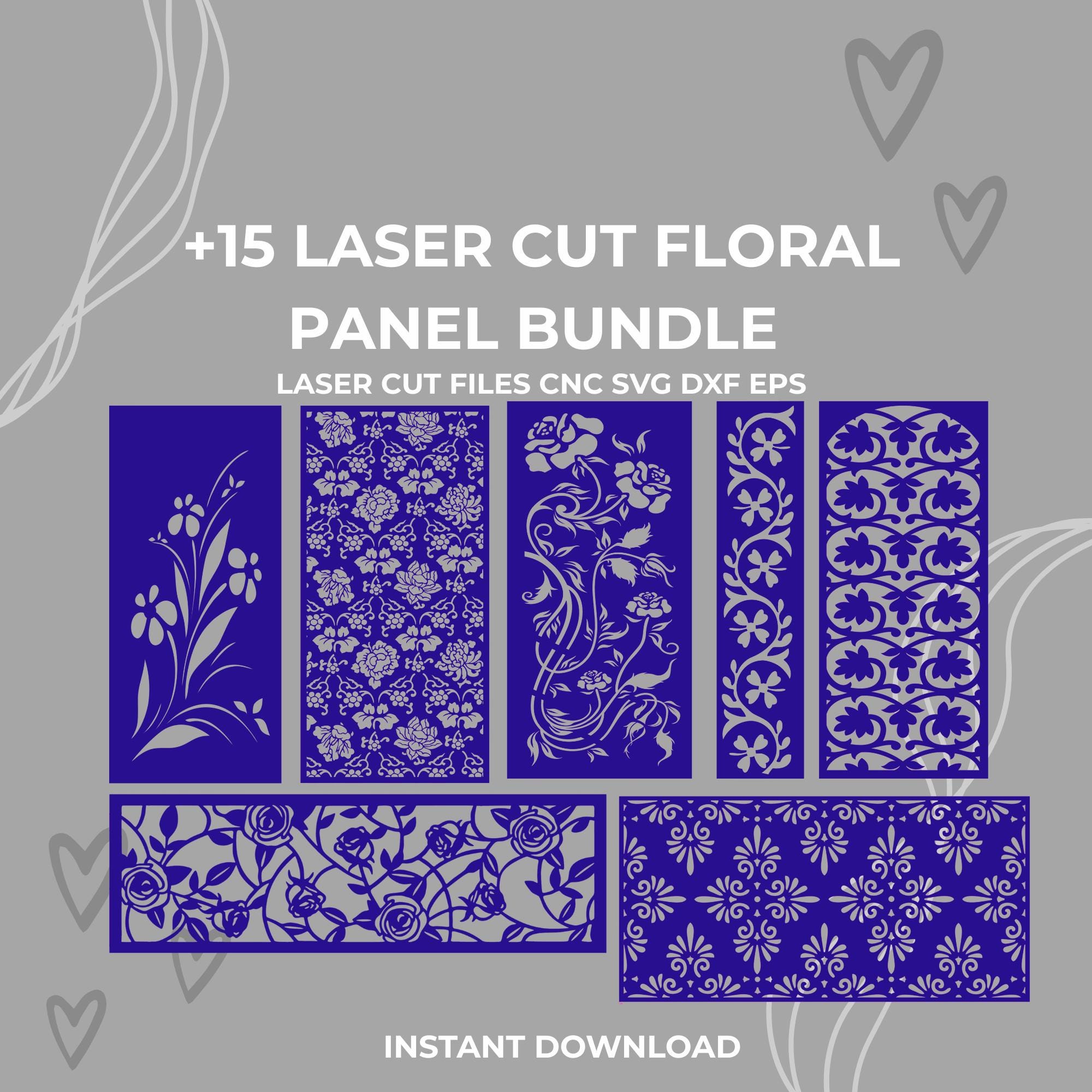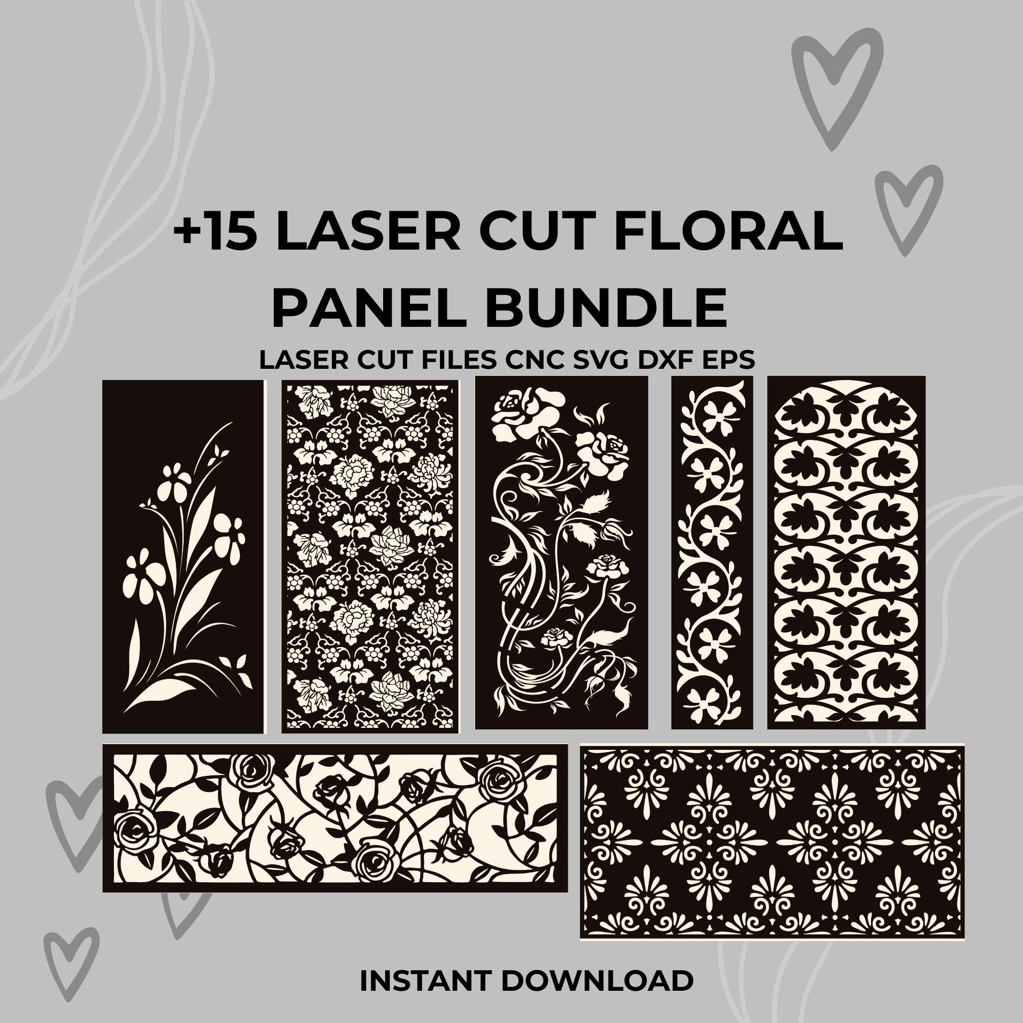 This bundle includes 15 decorative floral panel designs ready for laser cutting and CNC machines.