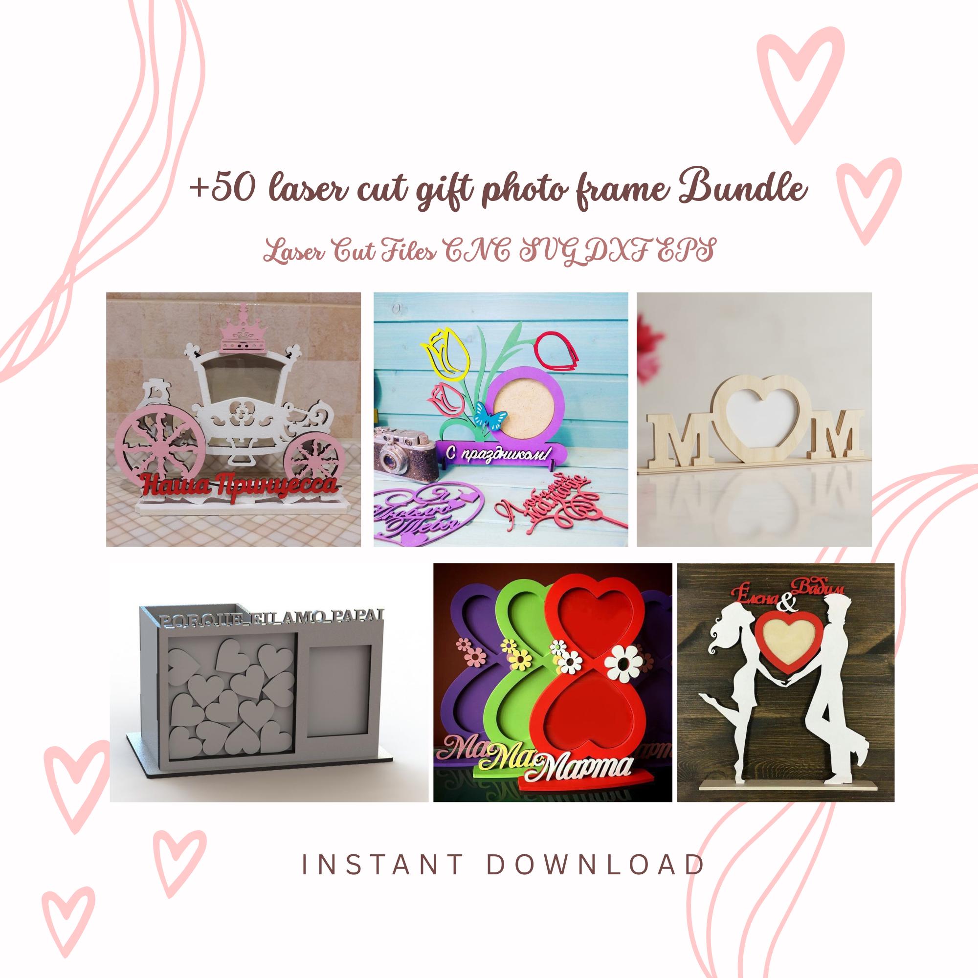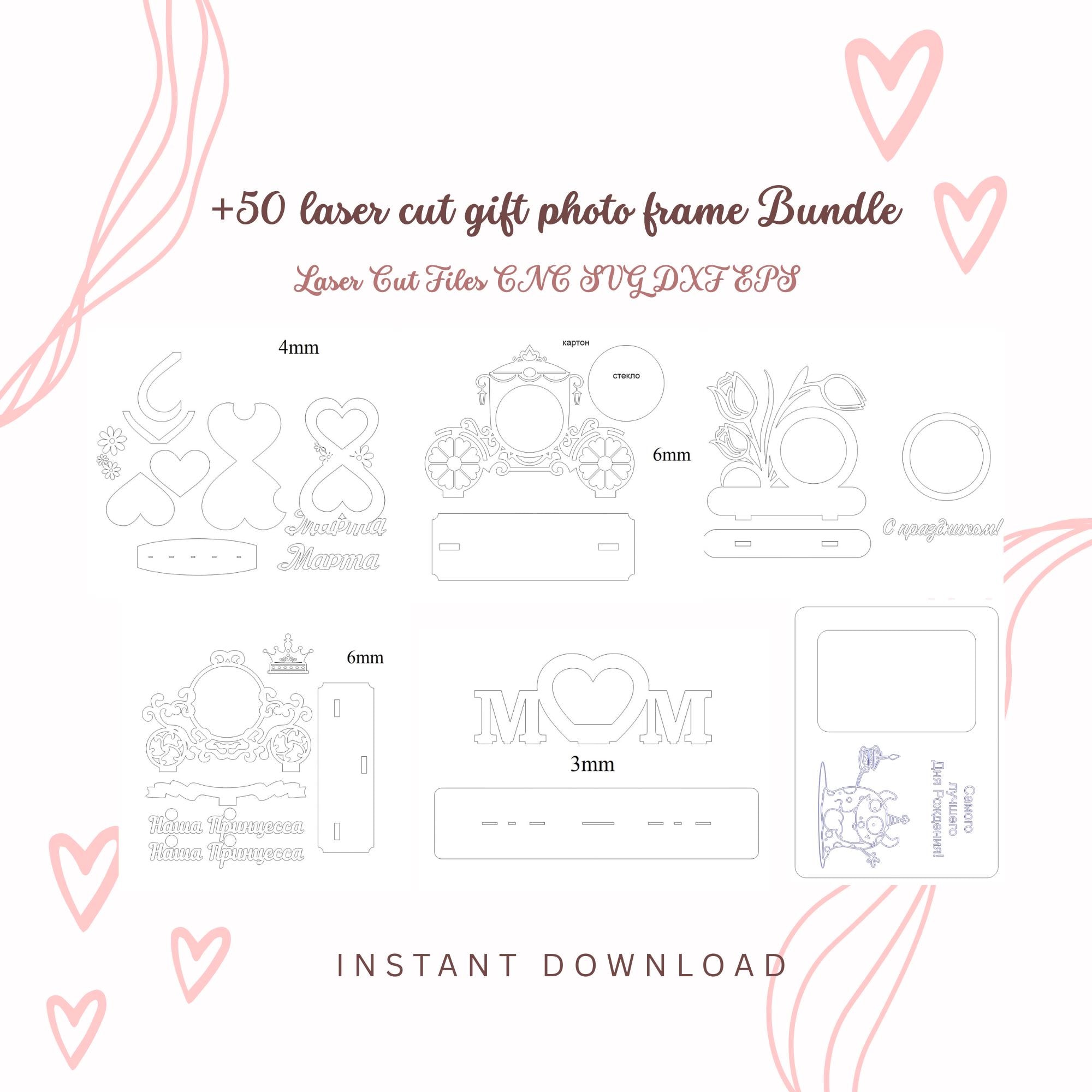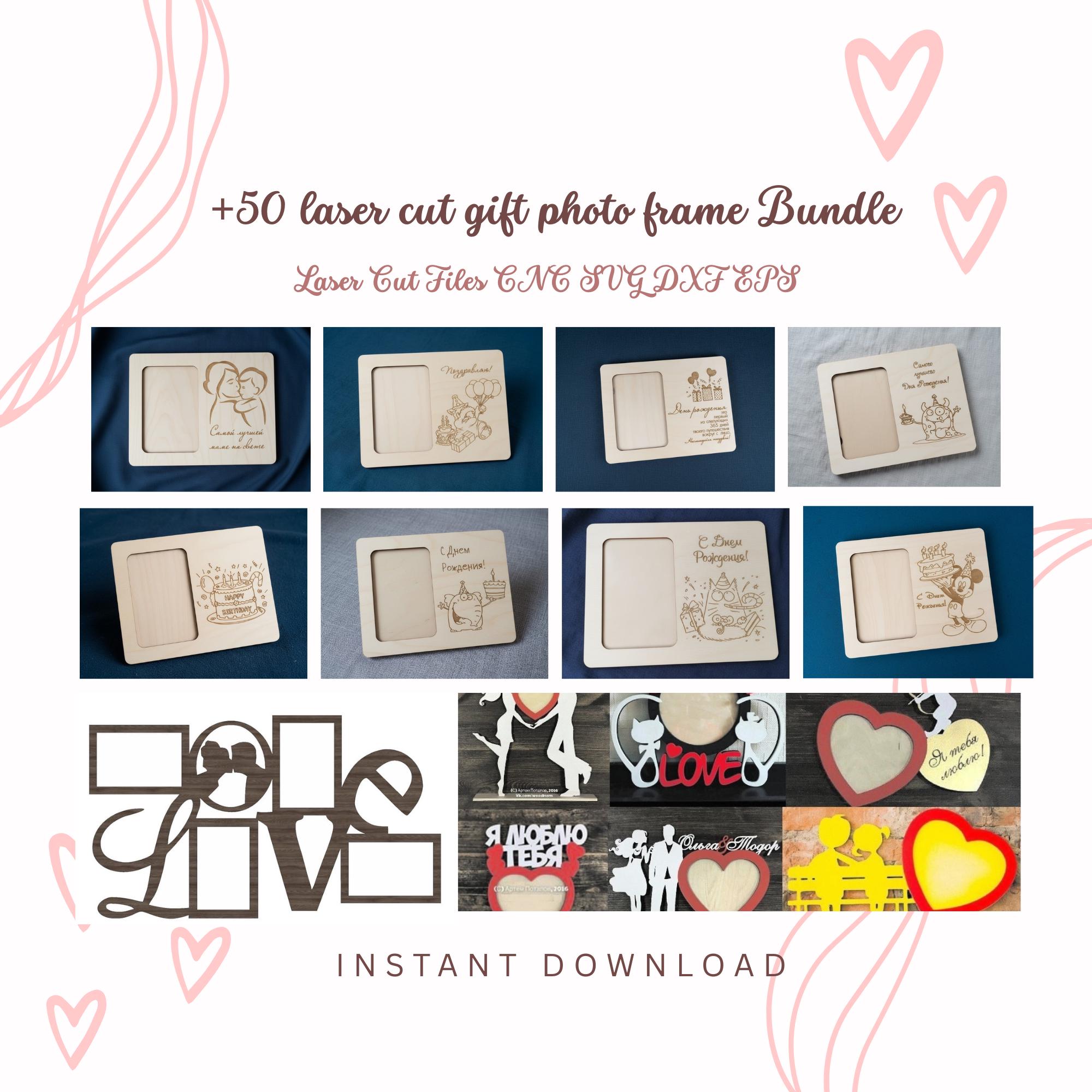 A professional collection of 50+ Photo Frame Laser Cut Files ready for production.